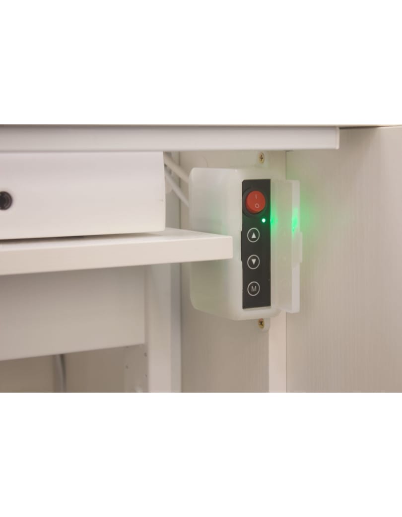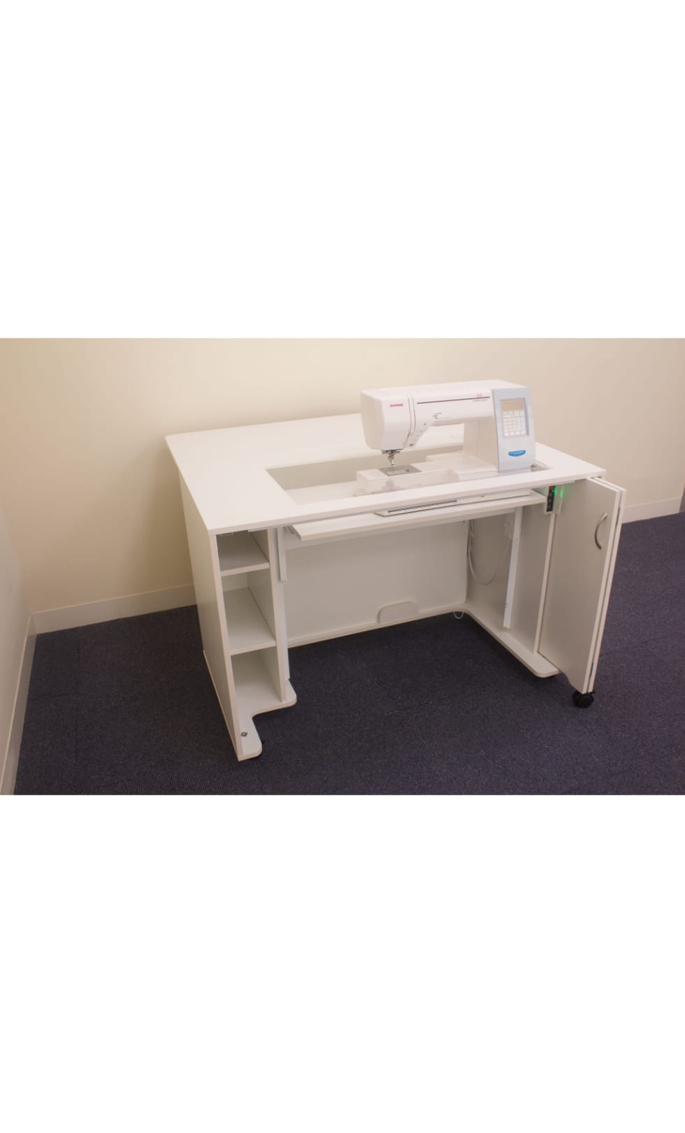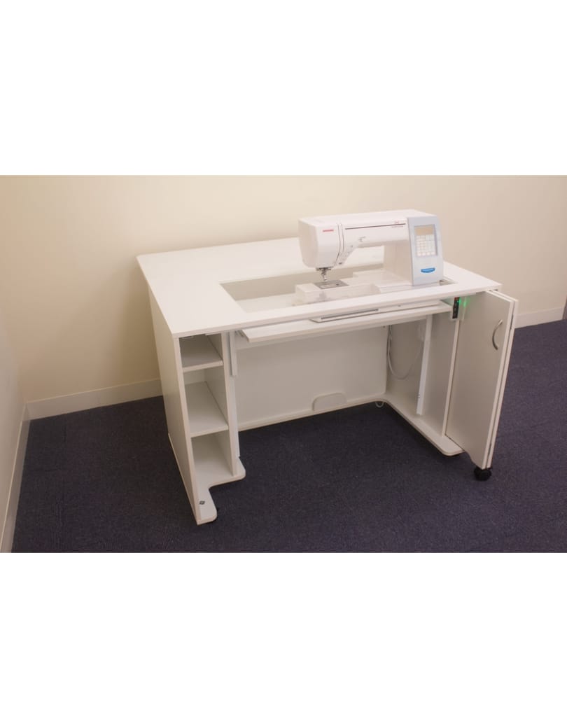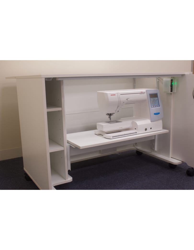 - Equipped with an electric-powered lift, setting up your sewing space has never been easier.