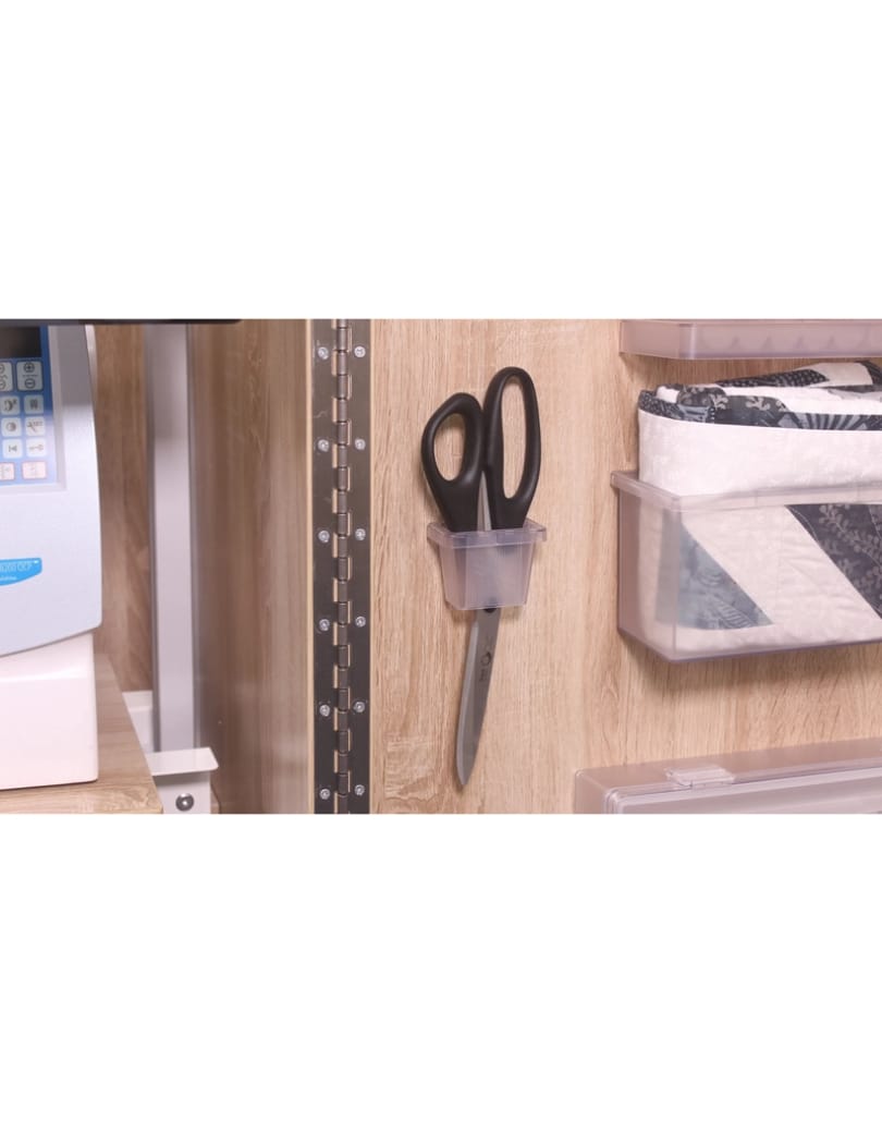 Inside, it features a convenient cable management system and ample removable door storage, including a dedicated holster for your favourite scissors, all easily accessible from your seat.