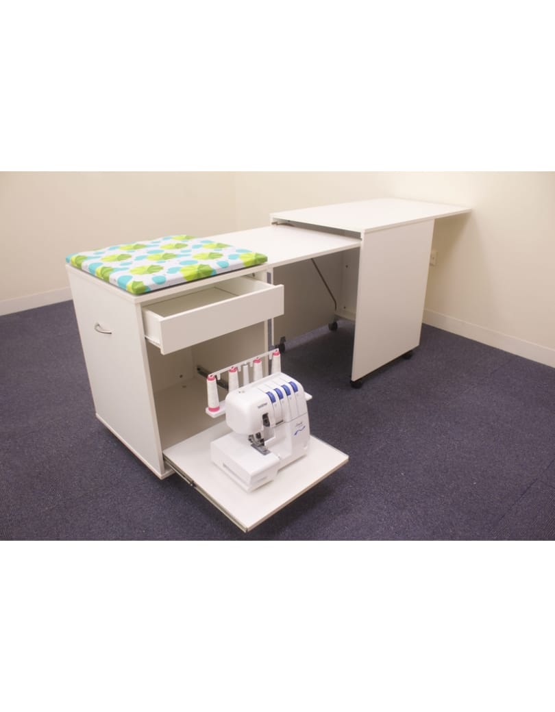The Overlocker Caddy’s expandable work surface is an excellent solution for any space, and the sliding shelf for the Overlocker with an accessory drawer is a smart addition. When combined with the Horn 860 and 5-drawer unit, it forms a seamless and spacious workspace for all your sewing projects.