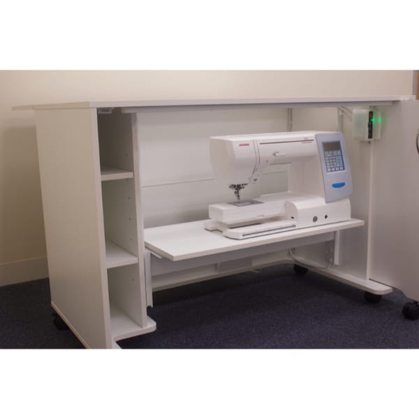 • Comes fitted with an electric-powered lift, making setting up your sewing space easier than ever.