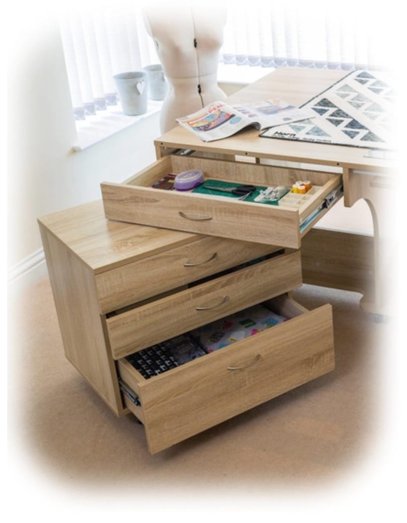 - A huge bank of large drawers. One in the main unit and 3 on a mobile separate caddy , that can be positioned wherever is best in relation to your project at that particular time.