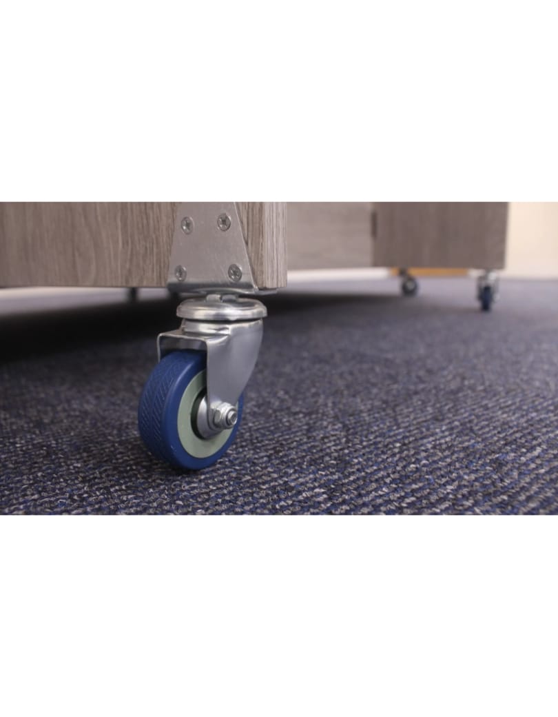 - Robust, lockable castors allow easy mobility.