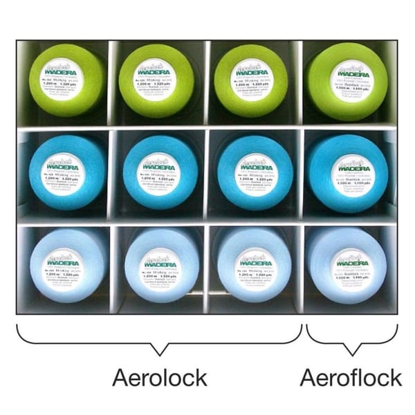 Box contains 3 colours: Aerolock and the colour-matched bulk thread Aeroflock.