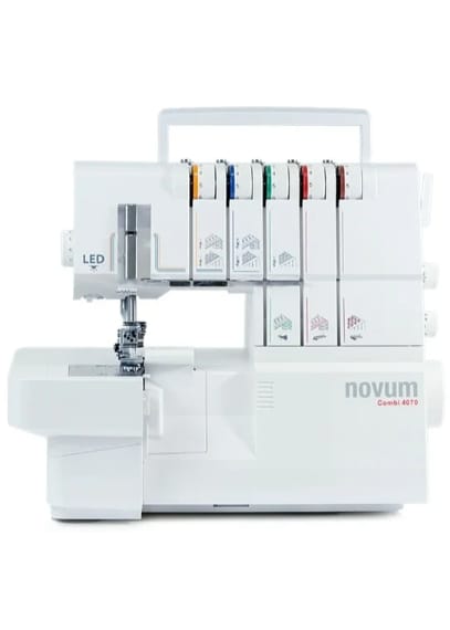 The Novum Combi 4070 is a 5-thread professional-grade overlock and coverhem (coverstitch) combination machine designed for domestic use. It allows users to perform both heavy-duty edge finishing and professional-style hemming without needing two separate machines.